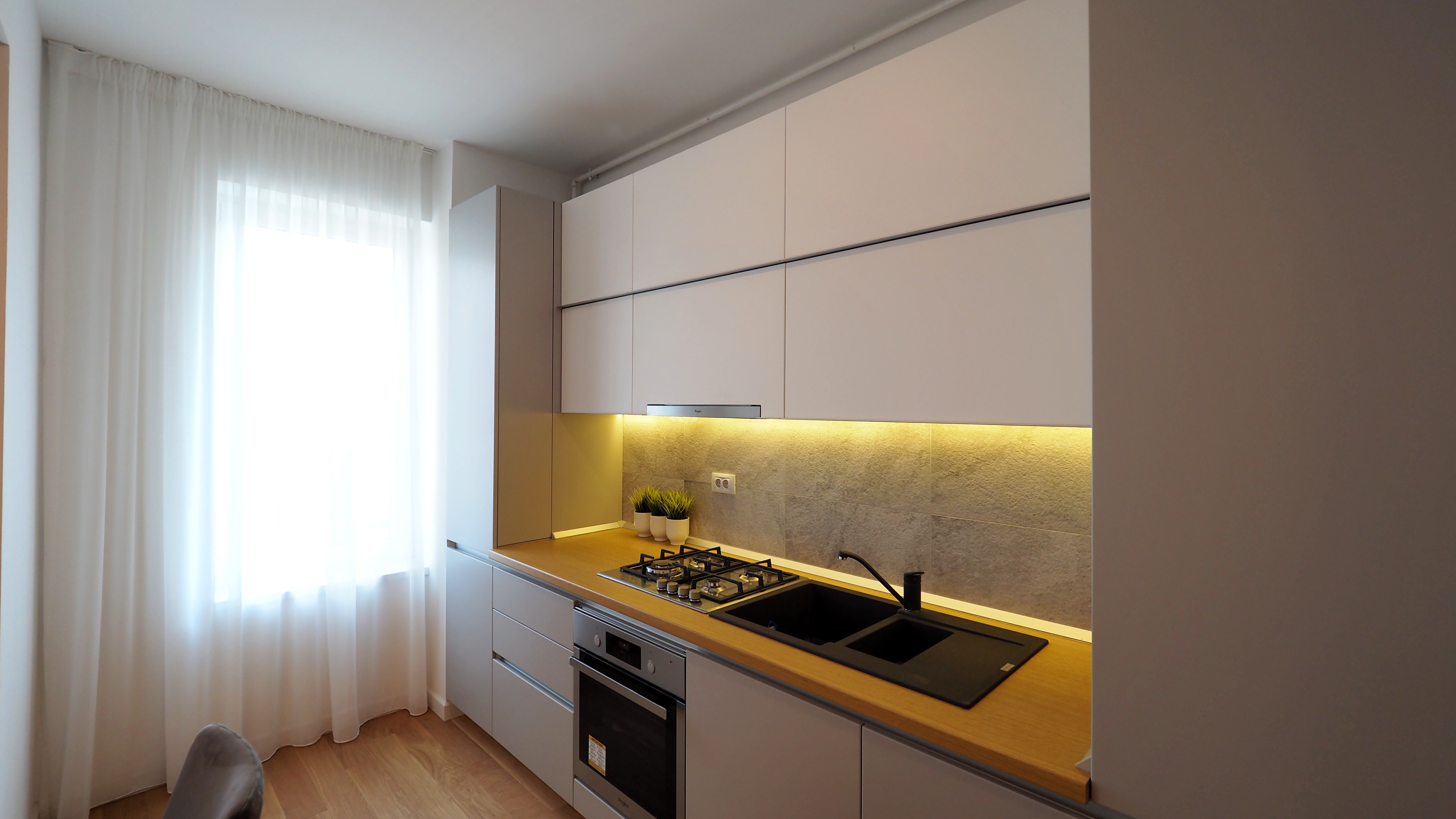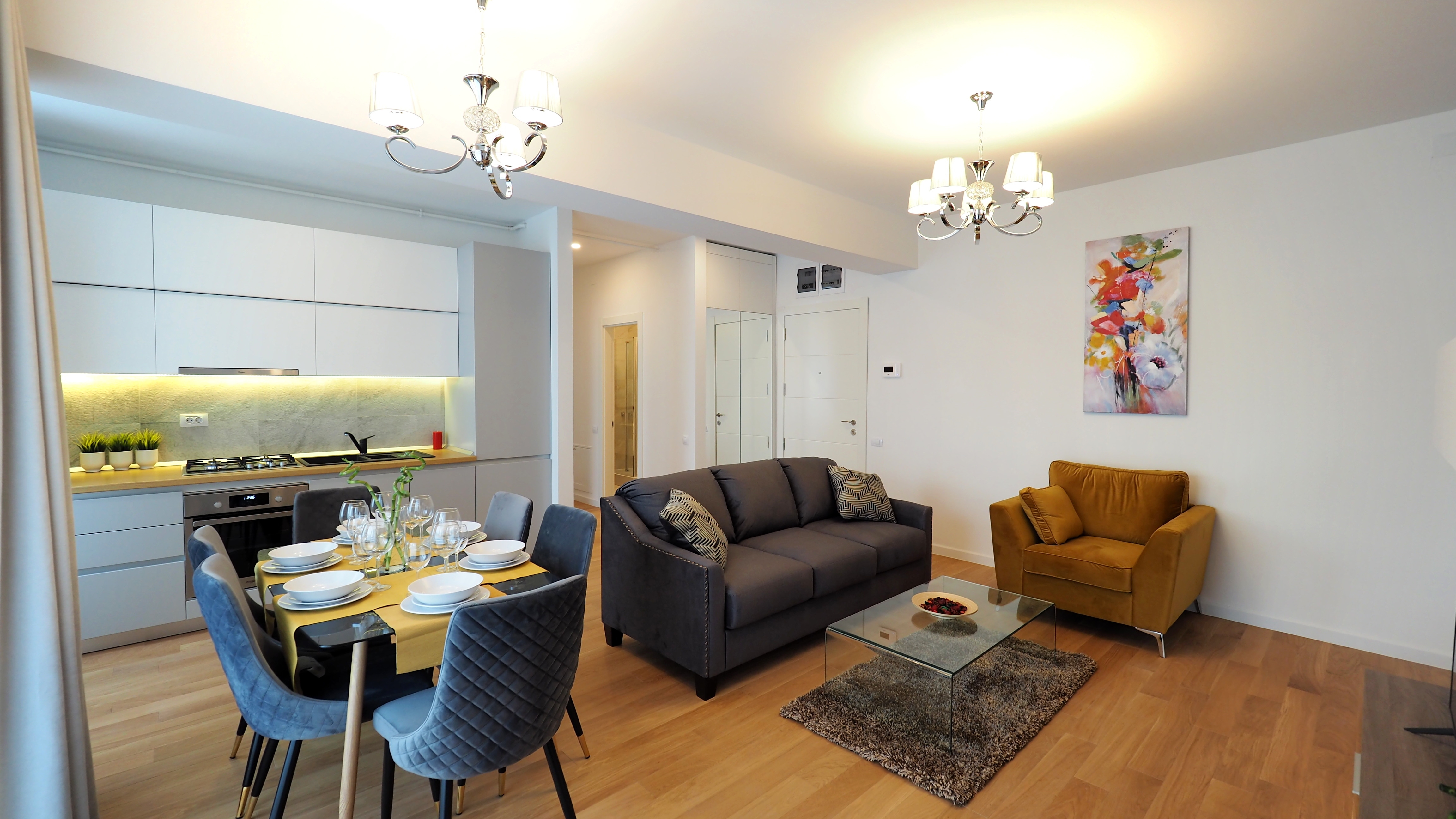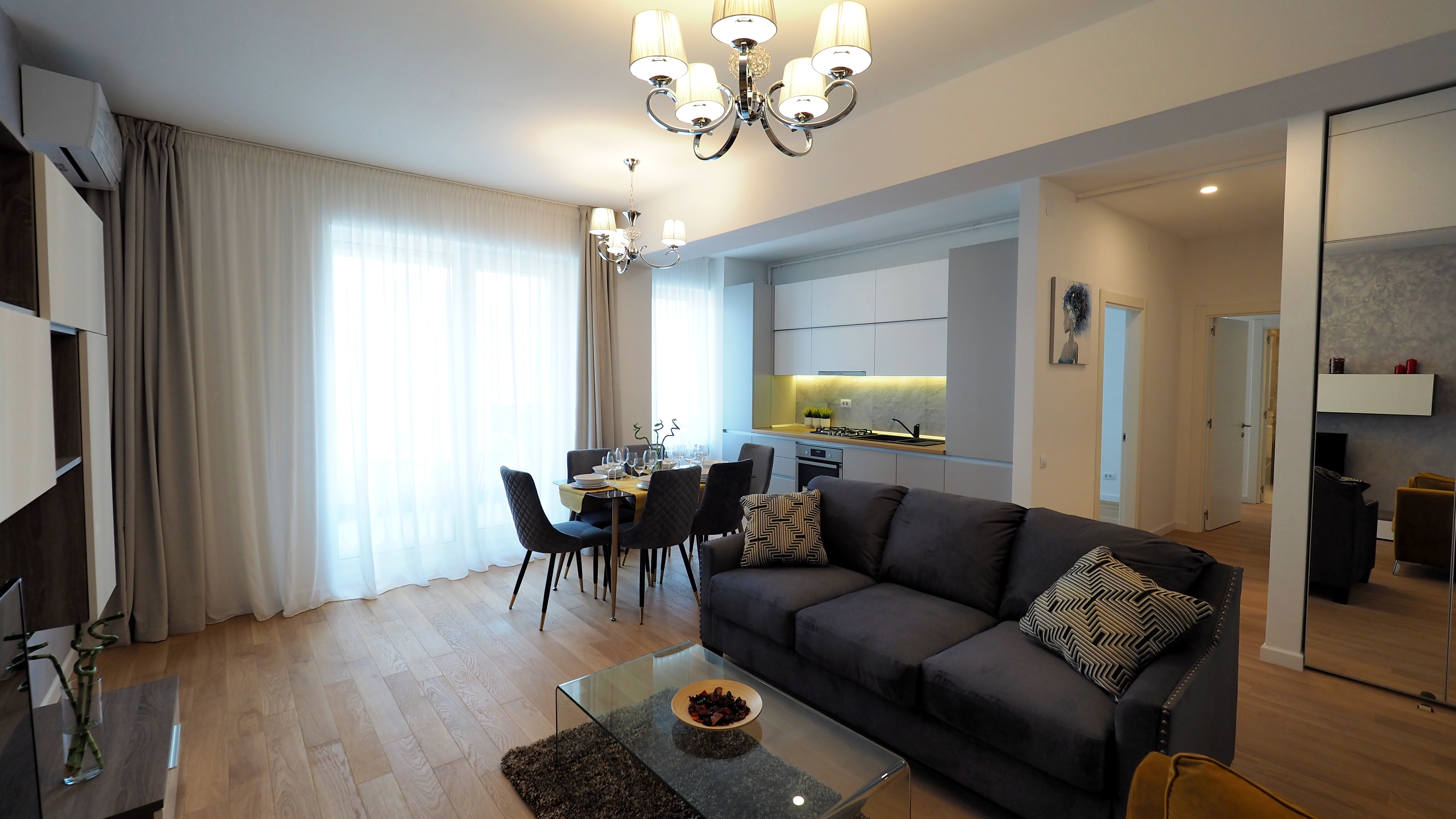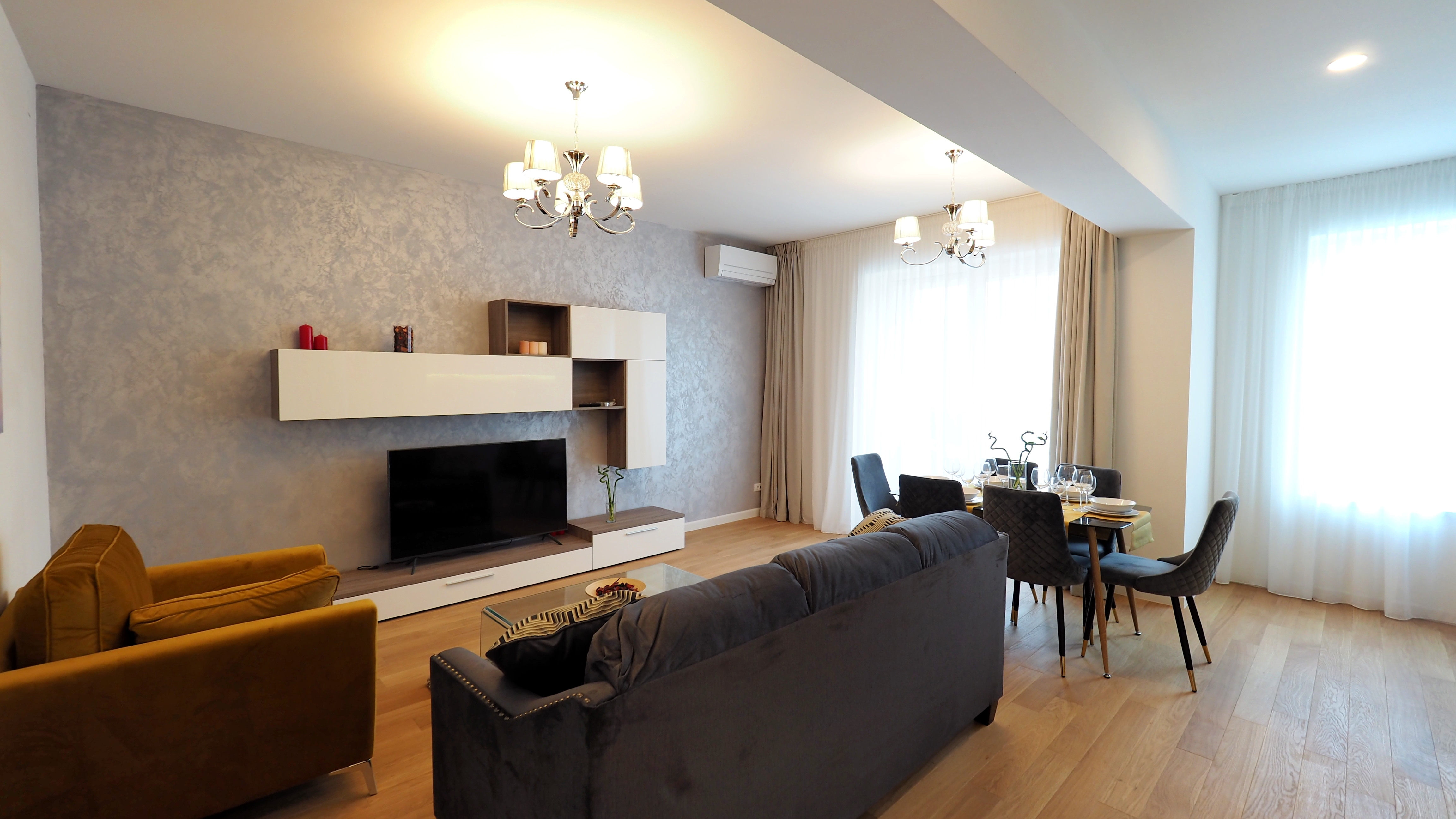 Finisajele sunt moderne si de buna calitate: parchet triplu stratificat, radiatoare incorporate in perete, ceramica Porcelanosa, obiecte sanitare Roca, usi Pinum, electrice Bticino, seif incastrat si infrastructura Novatek pentru incarcare autoturisme electrice.